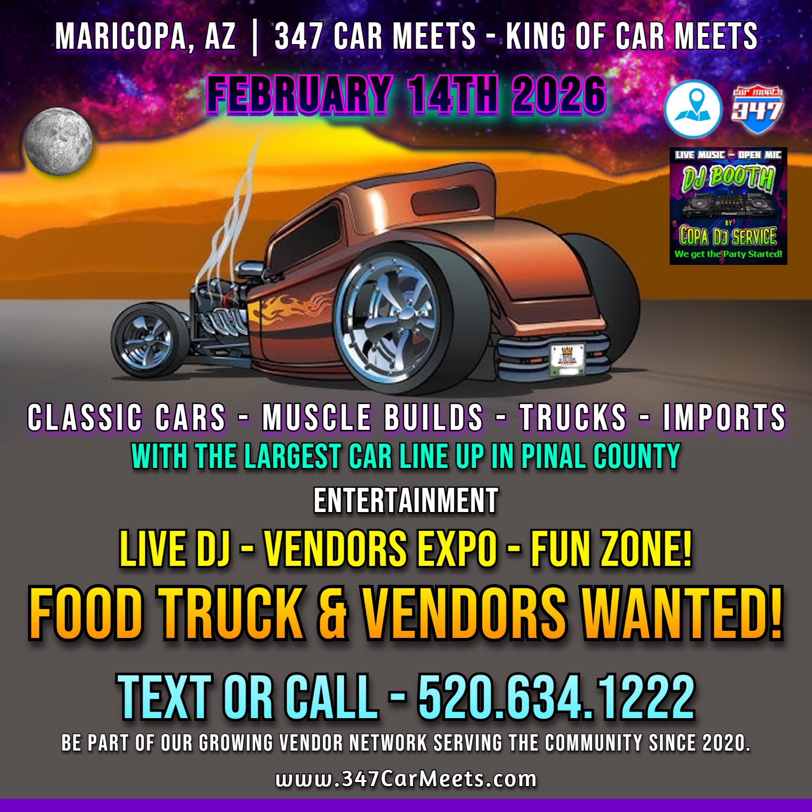 Bringing Maricopa real car culture — cars, art, vendors, and a marketplace built for the community. Open spots to showcase your ride and an open invite for everyone.